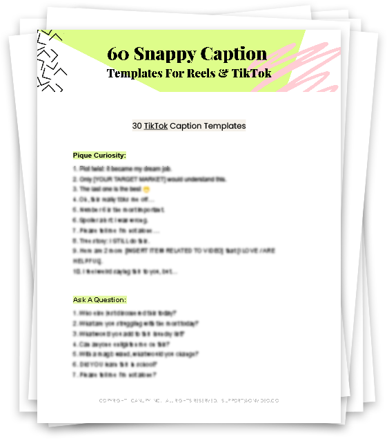 Every Wednesday, you’ll receive 5 short-form video ideas AND 5 caption templates for your TikTok, Reels, Shorts and Idea Pins that have already been adapted to your business model – whether that’s Coaching, Services or Products (physical or digital).