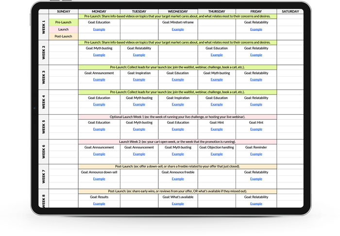 The weekly ideas are *not* specific to any one industry or niche. The ideas are categorized by what you offer as a business: Services, Coaching or Products (physical or digital). You'll adapt the ideas to be specific to your particular niche. We’ll give you lots of examples too!