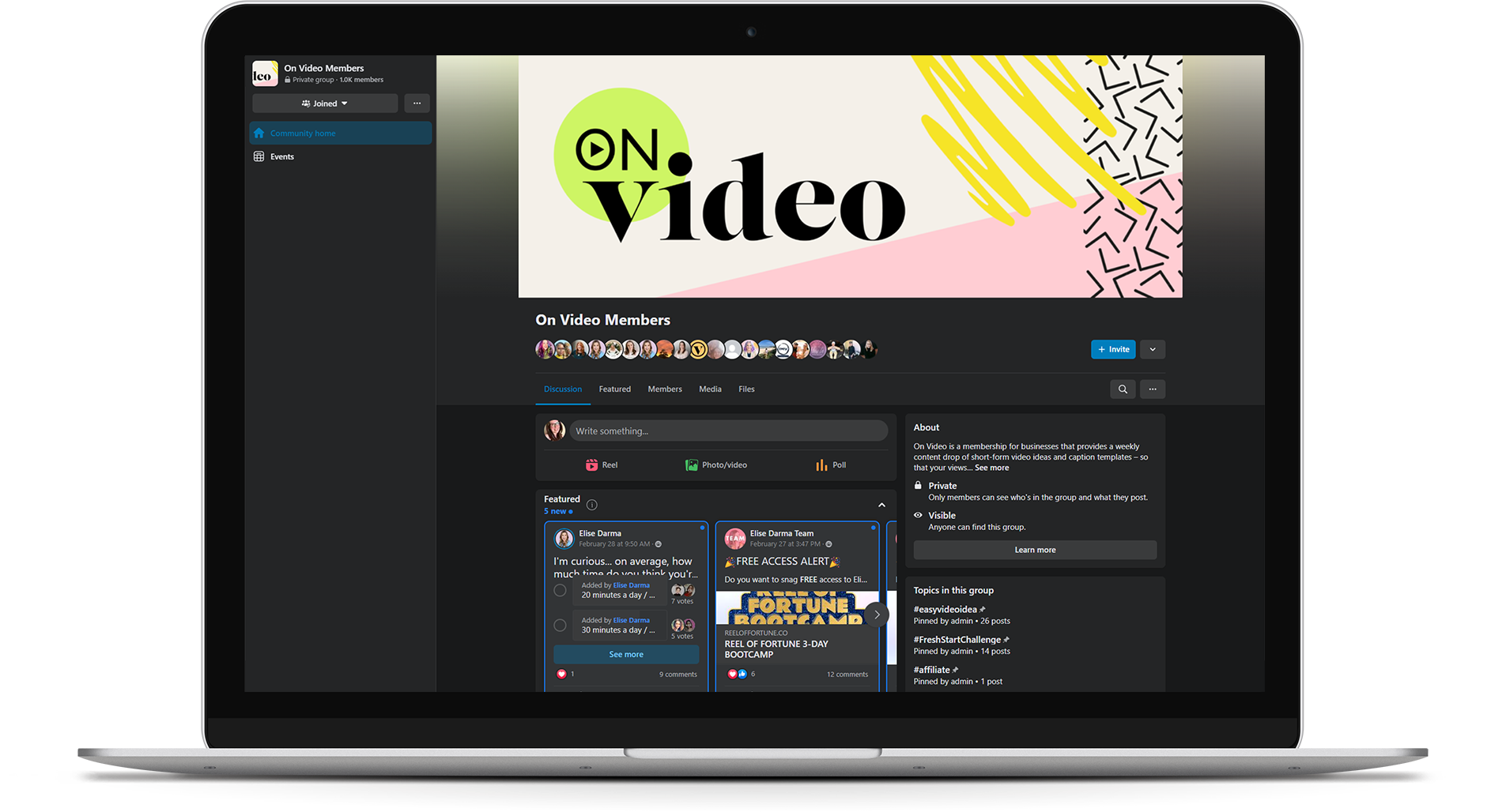 As a member of On Video, you'll unlock access to a private community group along with a dedicated Videos Coach who will provide all the answers to your questions. Need help adapting an idea to your unique niche? Having trouble editing that TikTok? Is Instagram being glitchy again? Your Videos Coach is just a post away!