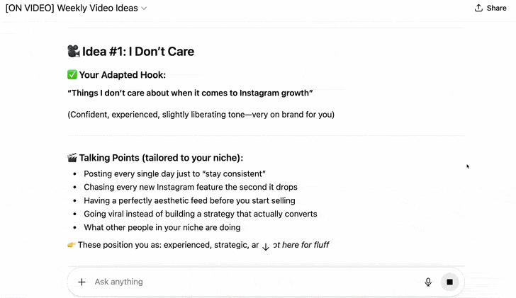 Get a weekly drop of done-for-you video ideas and captions that are perfect for